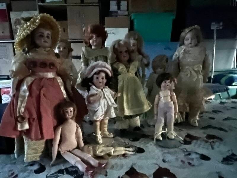 A lot of work ahead of us! 60 year collection of vintage and antique dolls and more! Watch for